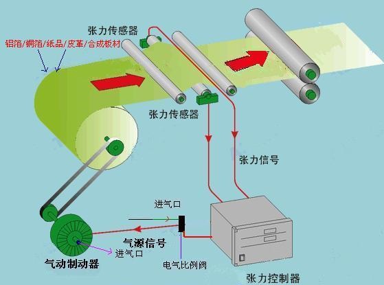 在卷材分切的生产过程中,为了保证分切后的成品质量,分切材料的张力必须有一个恒定值。分切机张力控制系统采用美国Nexen制动器,构成一个恒张力控制,取代原有的磁粉制动控制,其结构简单可靠、操作方便、控制稳定。在纸张、塑料、薄膜、胶片、橡胶、无纺布、铜箔、铝箔、钢带、铝带等卷材的分切加工过程中,要保持生产的品质、效率及可靠性,一套功能完备的张力控制系统是必备的条件。而制动器及离合器作为整个系统中的终端执行机构.其性能的优劣、寿命的长短、安装维护的难易、直接影响着产品的质量及成本。分切机张力控制系统中常用的离合器及制动器有:电磁式、磁粉式及气动式等。电磁离合器和制动器在小张力控制系统中有些应用,但由于其控制的扭矩较小因此应用范围也较窄。磁粉离合器和制动器是张力控制系统的常用执行元件,在传统的小张力控制系统中有广泛的应用。但由于其本身的结构及性质决定长期在潮湿的环境下磁粉易受潮,同时由于其结构及原理的特点在长期工作时容易产生磁粉烧结、生锈等现象,从而不能输出线性扭矩。而且要较大扭矩输出时,磁粉离合器及制动器的造价也较高。Nexen制动器及离合器应该说是在张力控制的发展需要。美国Nexen离合器制动器气动制动器自问世以来,经过数十年的革新现已广泛应用于各种工业环节:广泛应用于机械橡胶设备、化工设备、涂料设备、食品机械、包装机械、印刷机械, 锻压设备、成型机、木工机械, 自动机、填充机械, 合板制造、搬送机械, 制药机械, 伸线材、纤维机械, 金属加工, 合板制造机械, 制粉设备, 轮胎成型机, 造纸机械, 纺织机械, 升降装置等行业。它不仅永不烧结、不会生锈。同时也消除了在使用时磁粉制动器的剩磁扭矩,线性更加理想,能够更好的满足在高速工作时的散热功率的要求。